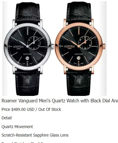 - Máy Roamer Thụy Sĩ zin theo đh sử dụng Pin : đang chạy đúng giờ.