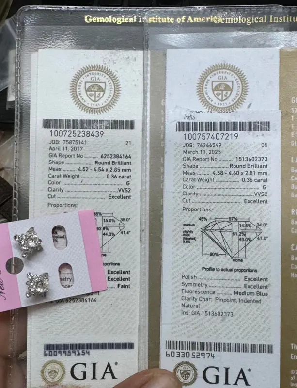 + 2 viên chủ kim cương thiên nhiên 4ly52 x 4ly54 và 4ly58 x 4ly6 Loại cực đẹp, Sạch vvs2 và nước trắng G có giấy Kiểm định của Gia6252384164 & Gia1513602373