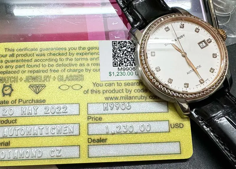 Đồng Hồ Ruby M9906 Diamond CZ Automatic Hàng chính hãng Thụy Sĩ sản xuất. Nguyên zin