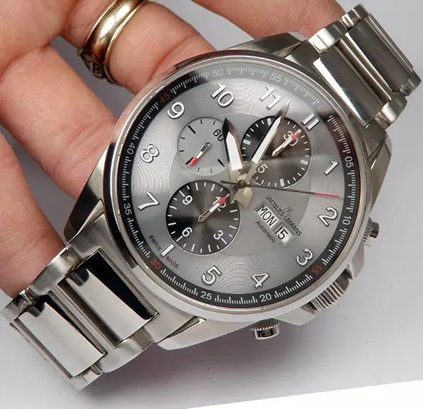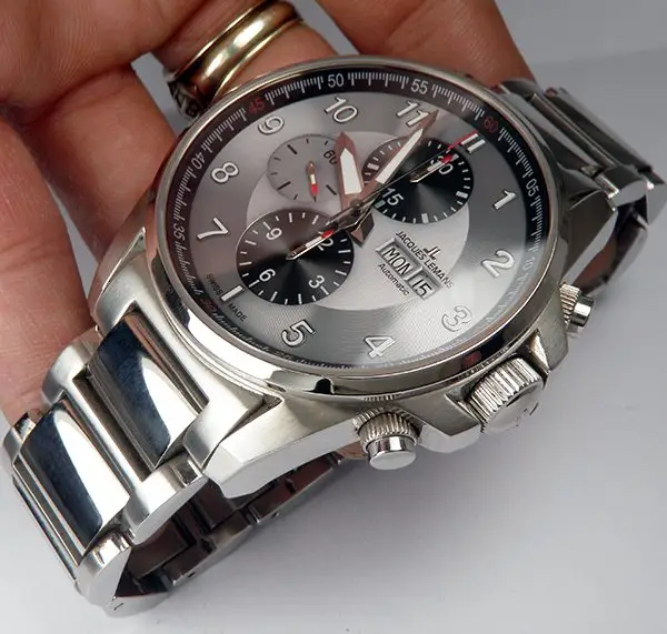 - Máy mới Đẹp Long Lanh tự động Jacquest Leman 7750 Thụy Sĩ 6 kim 2 lịch với chức năng bấm nút đếm thời gian Thể Thao zin theo đh đang chạy tốt