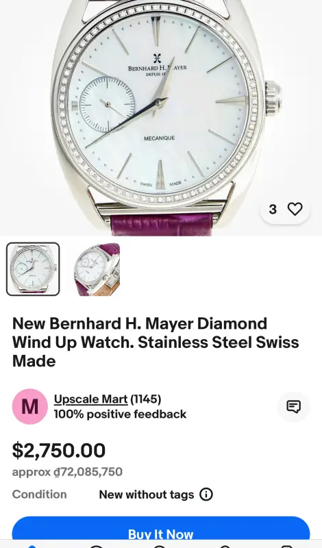 Đồng hồ Bernhard H Mayer Mecanique Diamond Manual Limited Edition 999 hàng chính hãng Thụy Sĩ sản xuất, nguyên zin 100% Còn Thẻ BH mua hàng zin 3,620 USD