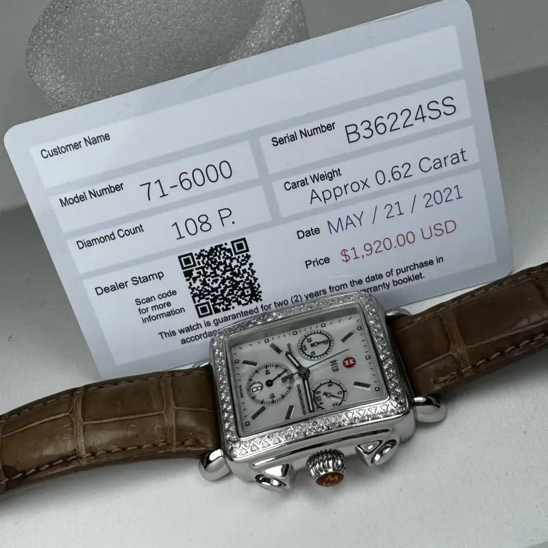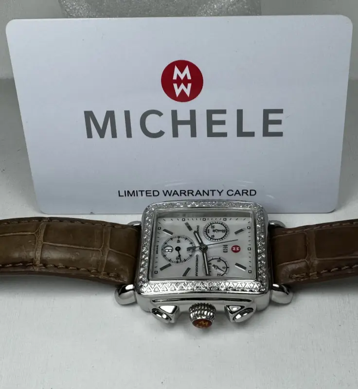 Đồng hồ Michele Deco Diamond Chrono Pearl Dial 71-6000 Quartz chính hãng Thụy Sĩ zin 100%