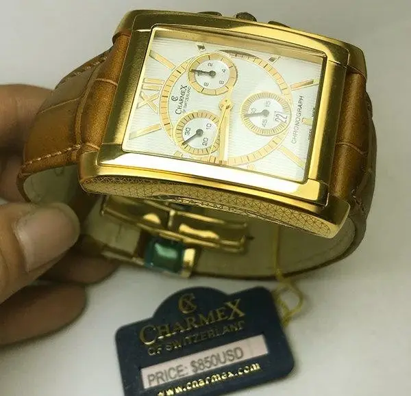 Đồng hồ Charmex Of Switzerland Chrono S2797 Quartz Swiss Made hàng chính hãng Thụy Sĩ sản xuất. Nguyên zin 100%. CònTAG zin mua mới gias 850 USD Hình thức rất đẹp mình đã tháo ra để đeo chơi đươc chục lần giờ để TAG đâu quên Mất Rồi