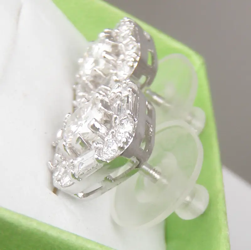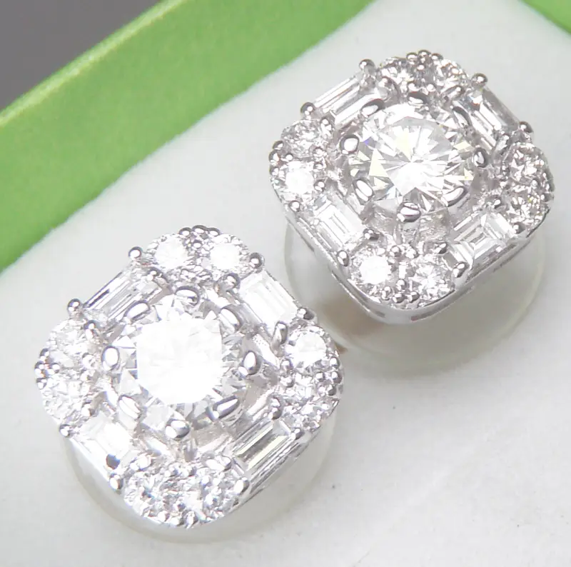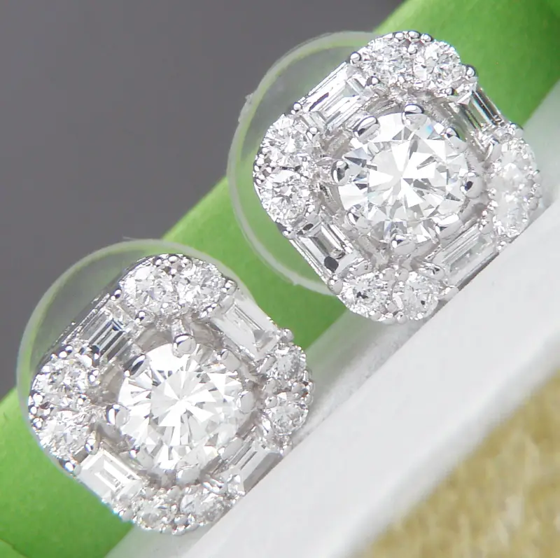 Hoa Tai Cushion Shape Halo Baguette Diamond 18k Earrings Hàng của Á Châu sản xuất. Cực Long Lanh