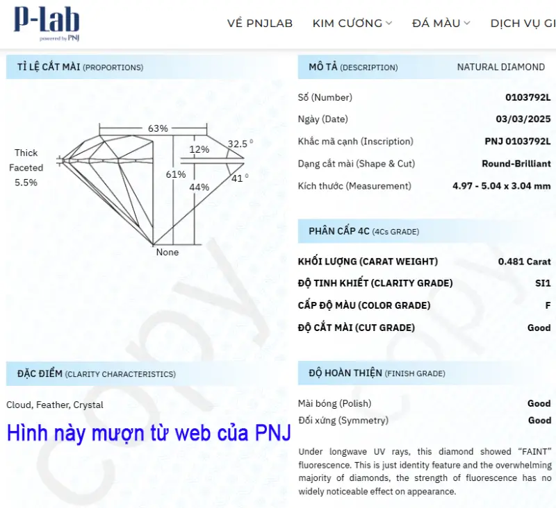có mã số kiểm định của PNJ P-Lab0103792L zin nhưng hiện mất giấy,