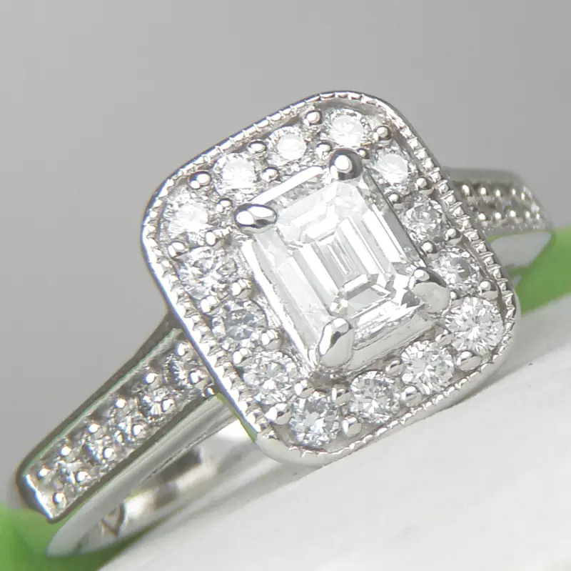 + 1 Viên chủ kim cương thiên nhiên zin hãng dáng Emerald 4Ly62 x 3Ly66 sạch VS1 và nước Trắng i - H chiếu rất lửa Sáng lấp lánh