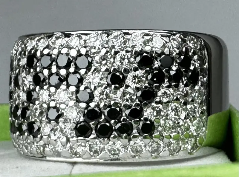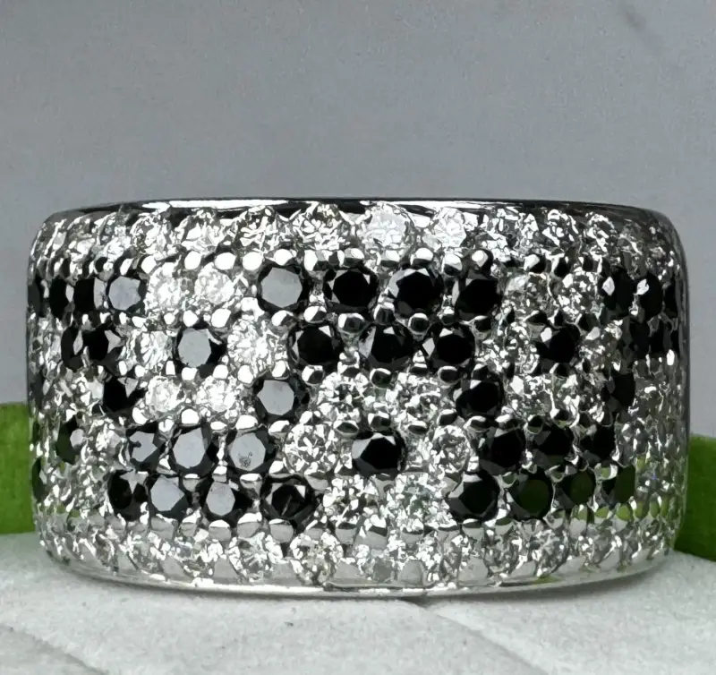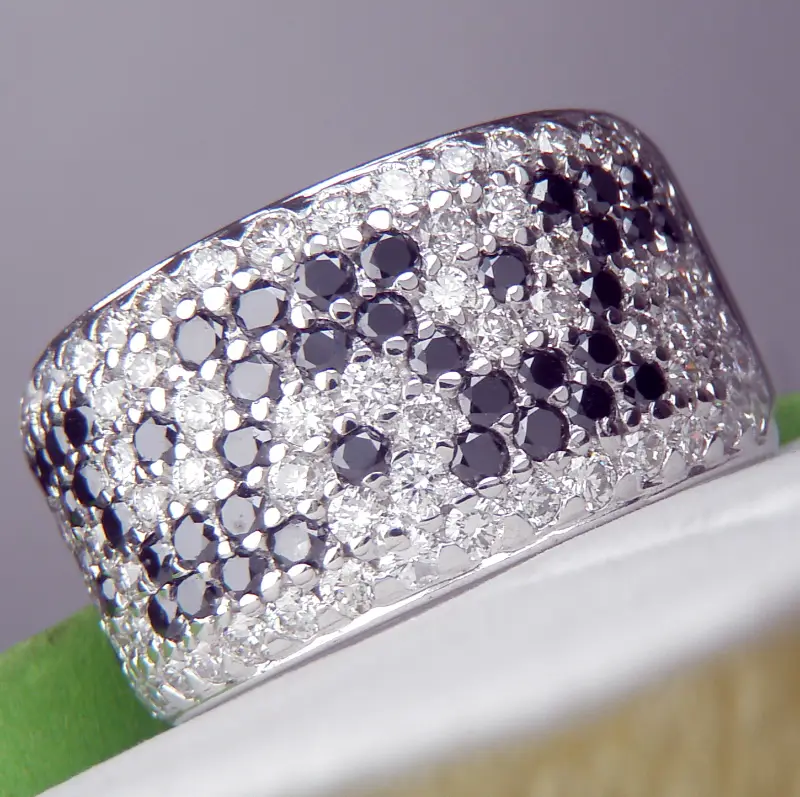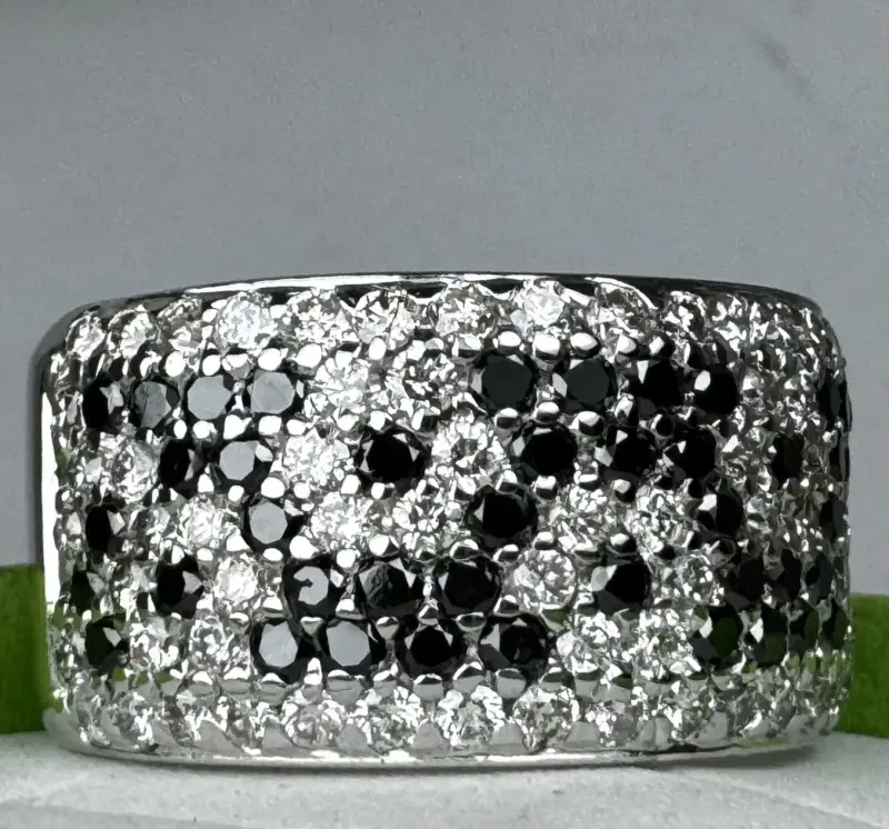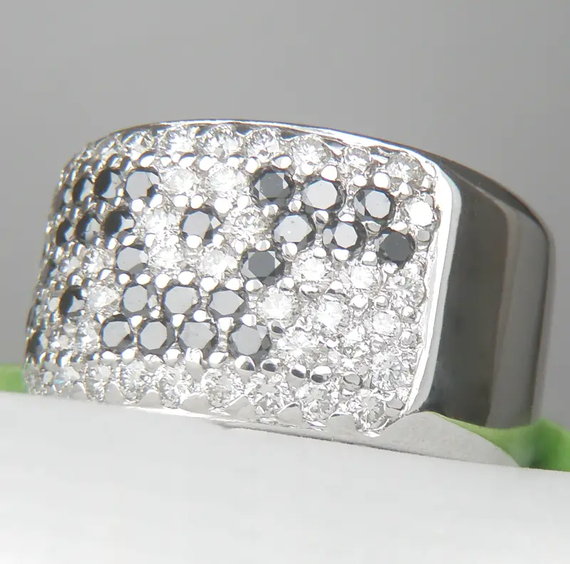 Nhẫn MRJ 18k 1,58 Carat Princess Diamond Black Cocktail Band Ring Unisex Italy Hàng chính hãng của Ý sản xuất