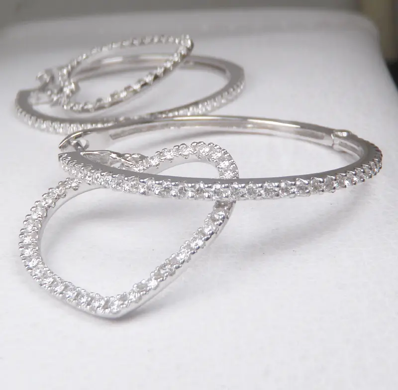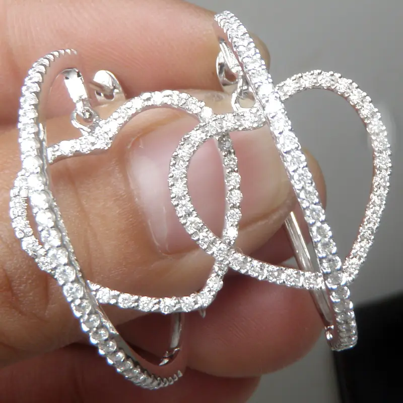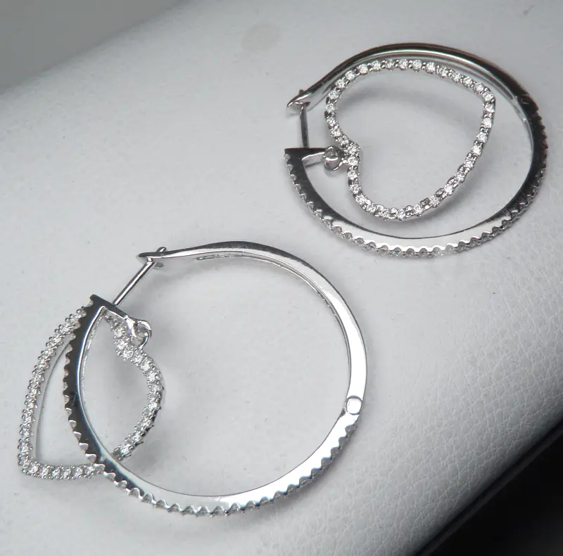 Đôi Bông tai 14k Diamond Drop Dangle Heart Earring Women Design Italy hàng của Ý Thiết kế, Đã qua sử dụng những vẫn như Mới Đẹp nguyên vẹn