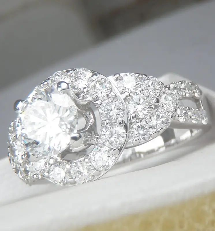 Nhẫn Nữ 18k Unique Halo Engagement Ring VBSL+69HCLh Hàng chính hãng Mỹ sản xuất tại Á Châu Mới Long Lanh