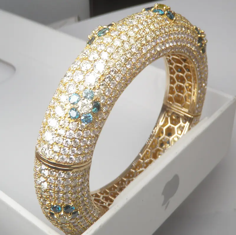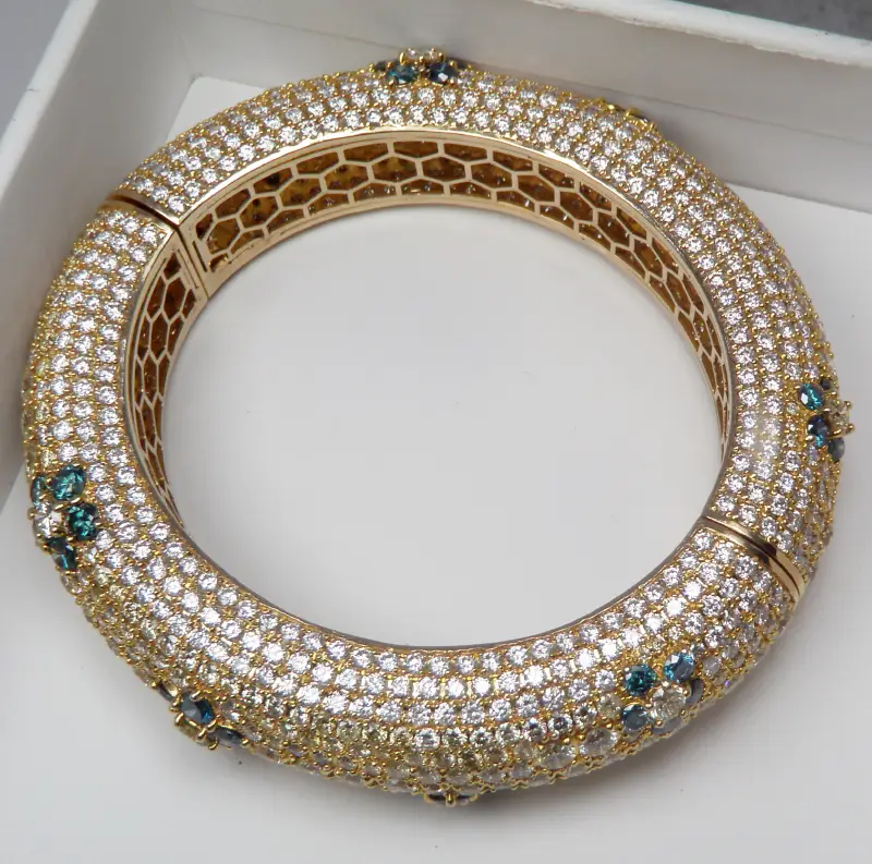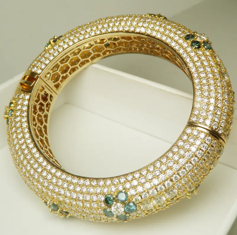 Vòng đeo tay 14k Diamonds Dome Bracelet Bangle Design USA Đã qua sử dụng nhưng còn Đẹp Long Lanh và nguyên vẹn, có sẳn giấy kiểm định vàng và Kim cương Thiên nhiên