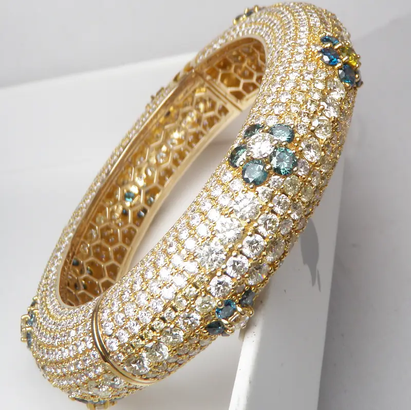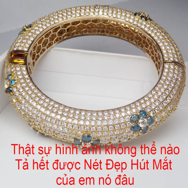 - Chất liệu bằng vàng 14k đính 1077 Viên Kim Cương Thiên Nhiên Đẹp Lung Linh chiếu sáng Rực lửa Lấp Lánh chói cả mắt