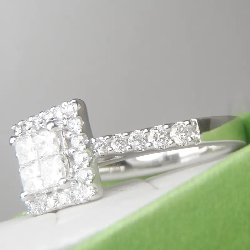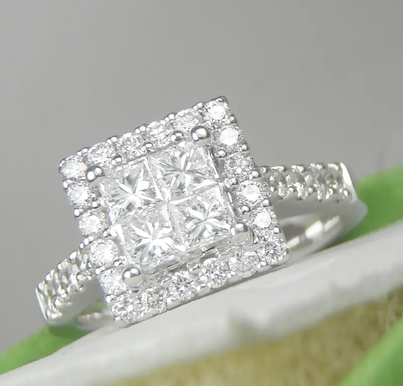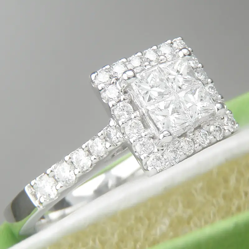 Nhẫn Nữ GCA Halo Princess Diamond 14k Ring England Ladies hàng chính hãng Anh Quốc và Mỹ, đã sử dụng nhưng vẫn đẹp nguyên vẹn như Mới, Nguyên zin 100%