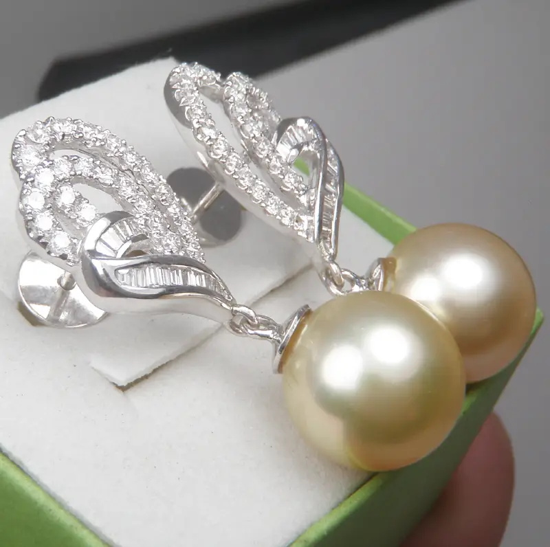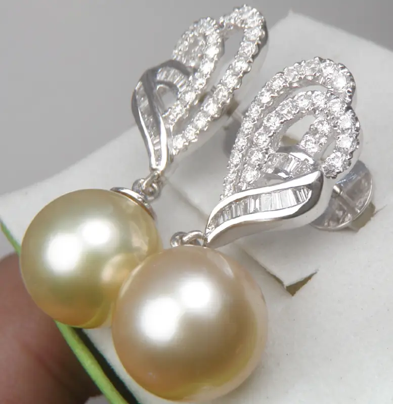 Đôi Bông tai 18k Baguette Diamond & Pearl Earring Lg Women France hàng của Pháp sản xuất, zin 100% Hàng đã sử dụng nhưng vẫn đẹp nguyên vẹn