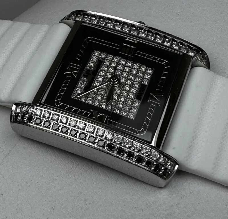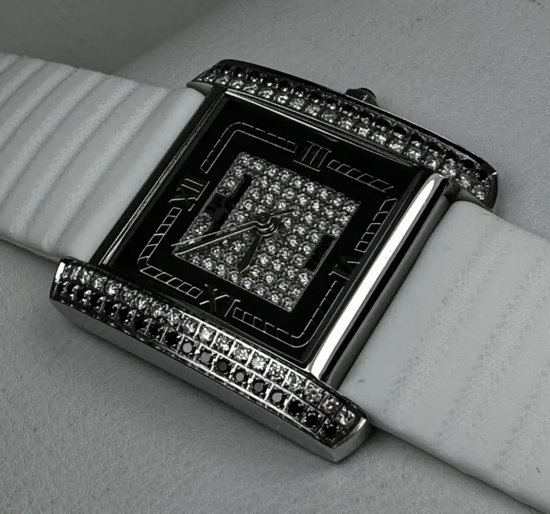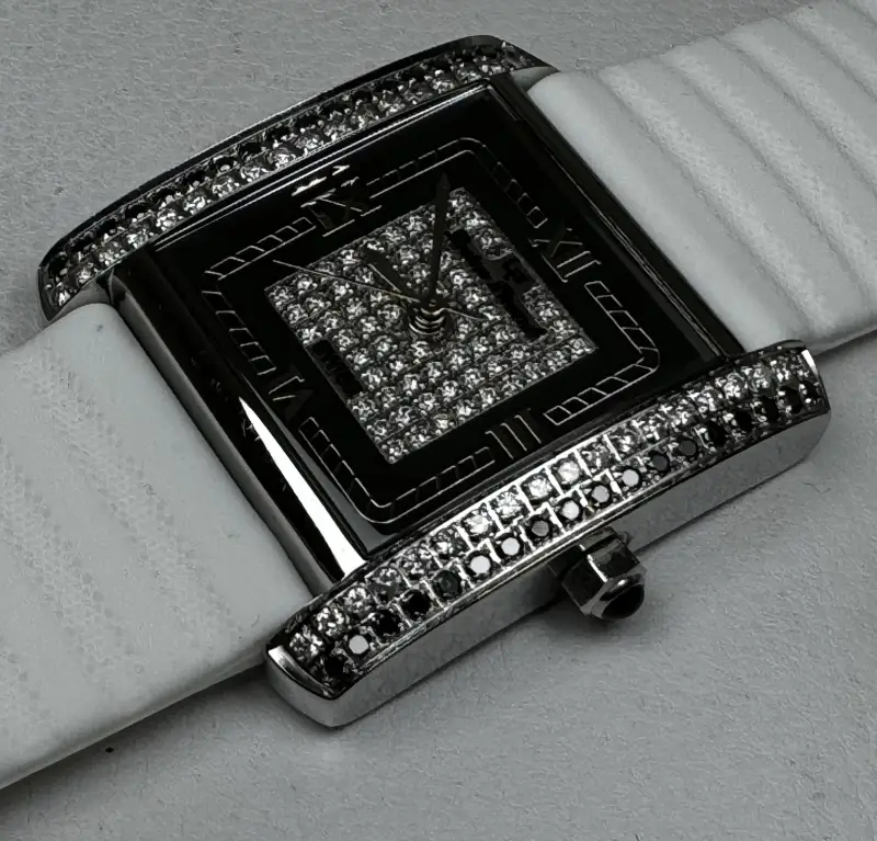- Vỏ Swiss Inox đính 74 viên Kim Cương xịn Thiên nhiên trắng và đen loại rất đẹp zin của hãng, chiếu lửa Lấp Lánh