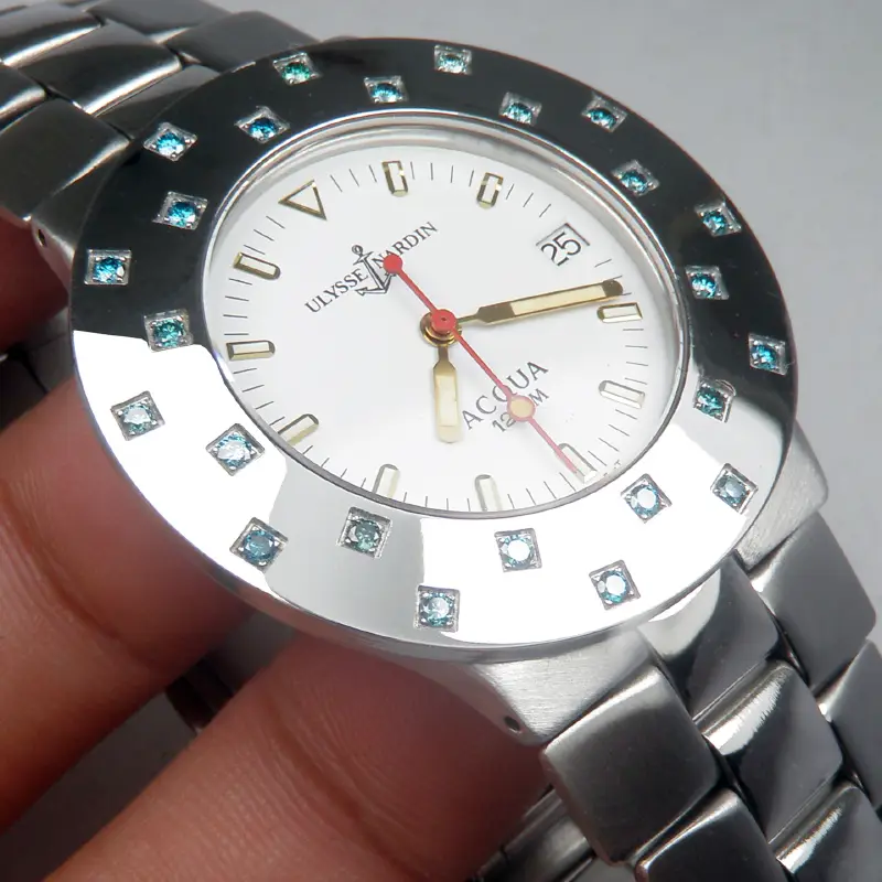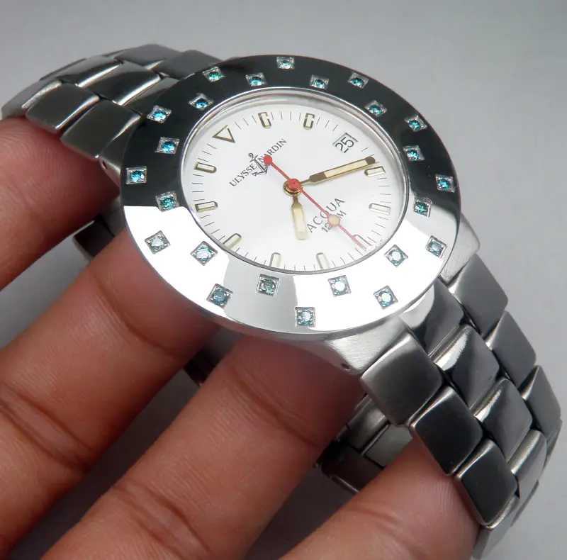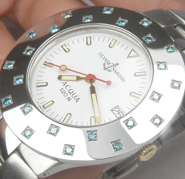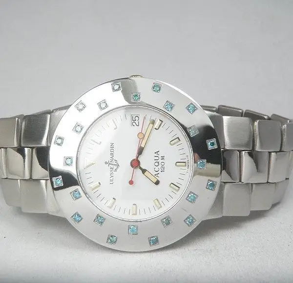 Đồng hồ Ulysse Nardin Acqua Natural Blue Diamond 120m Quartz Swiss Made Watch Hàng chính hãng Thụy Sĩ sản xuất. Hình Thức Đẹp