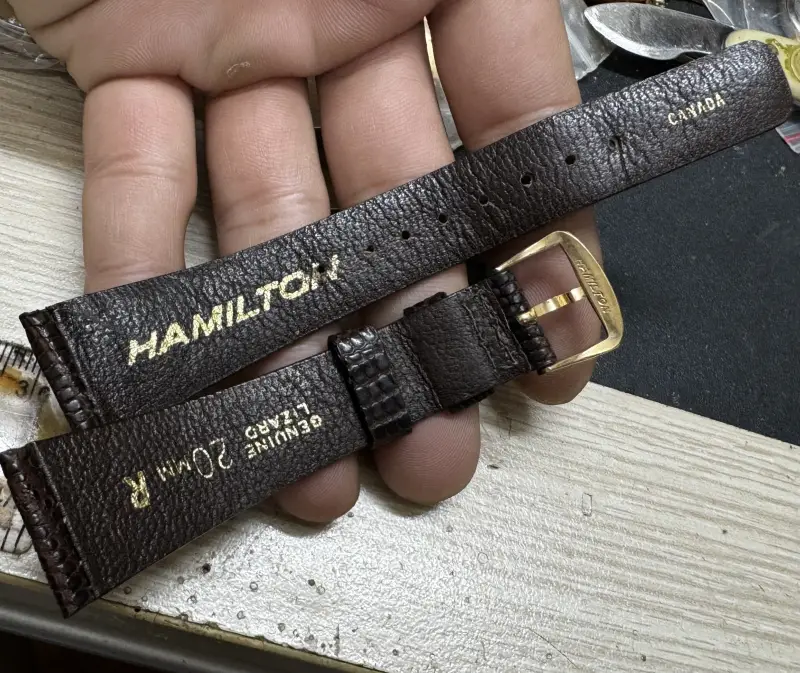 Dây da và Khóa Hamilton Gold Filled Swiss Buckle Genuine Lizard hàng chính hãng Thụy Sĩ sản xuất tại Canada. Còn Rất Đẹp