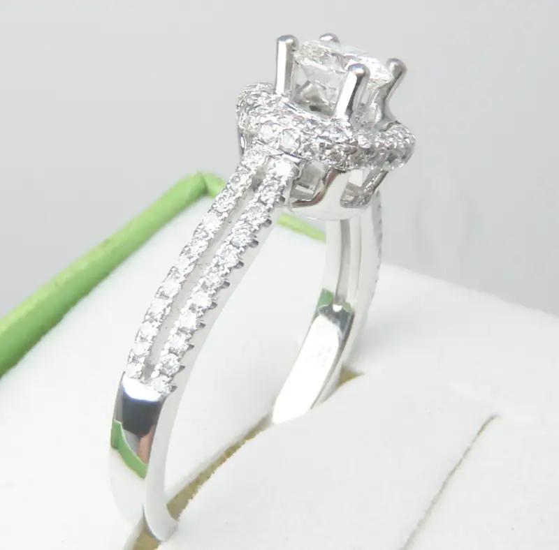 Nhẫn Nữ Halo 18k Diamond Shank Split Ring Italy Ladies hàng của Ý sản xuất.